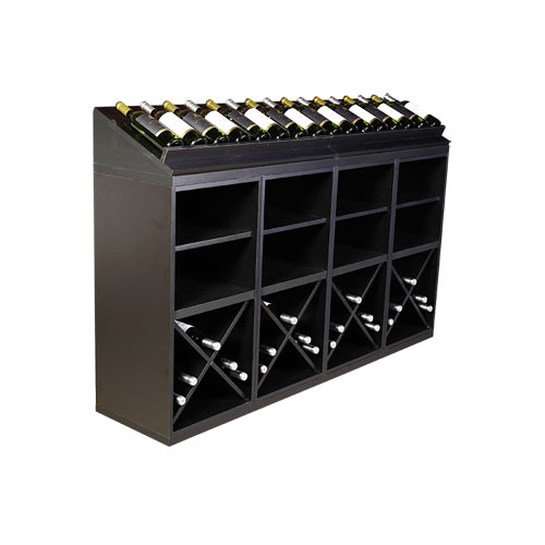 Botellero Merlot 2 Alturas con medias Aspas y 1 estante con bandejas exposicion ofrece estilo y funcionalidad para tu bodega. Modular, elegante y pensado pa…