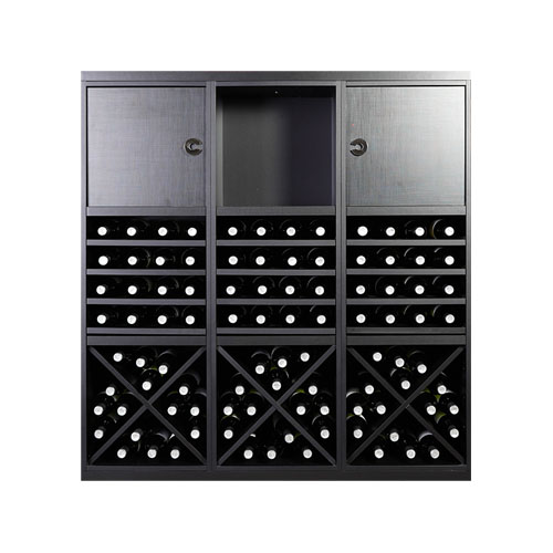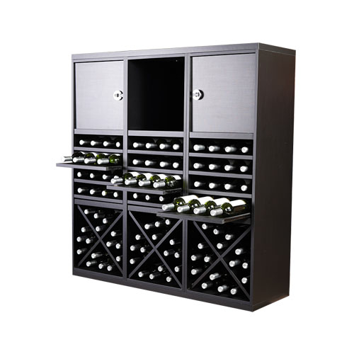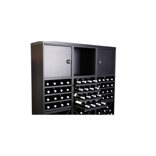 Botellero Merlot 3 Alturas con aspas 4 estantes base y puertas ofrece estilo y funcionalidad para tu bodega. Modular, elegante y pensado para amantes del vino.