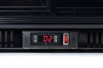 Se construye con cuerpo metálico en negro, con puerta acristalada en negro, abatible y con tirador en negro. El enfriador Cavanova FB02 cuenta con 4 bandejas metálicas en las que poder organizar las bebidas y encontrarlas a simple golpe de vista a la hora de servir.