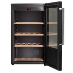 Vinoteca – 1 zona de temperatura – clase energética A – 30 btls – Estantes de madera – Puerta cristal curva – dim 85x50x56 cm (alto x ancho x fondo)
