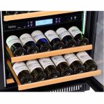 Vinoteca encastrable BAJO ENCIMERA de conservación multitemperatura para 38 botellas. Su capacidad máxima son 46 botellas eliminando dos bandejas de soporte.